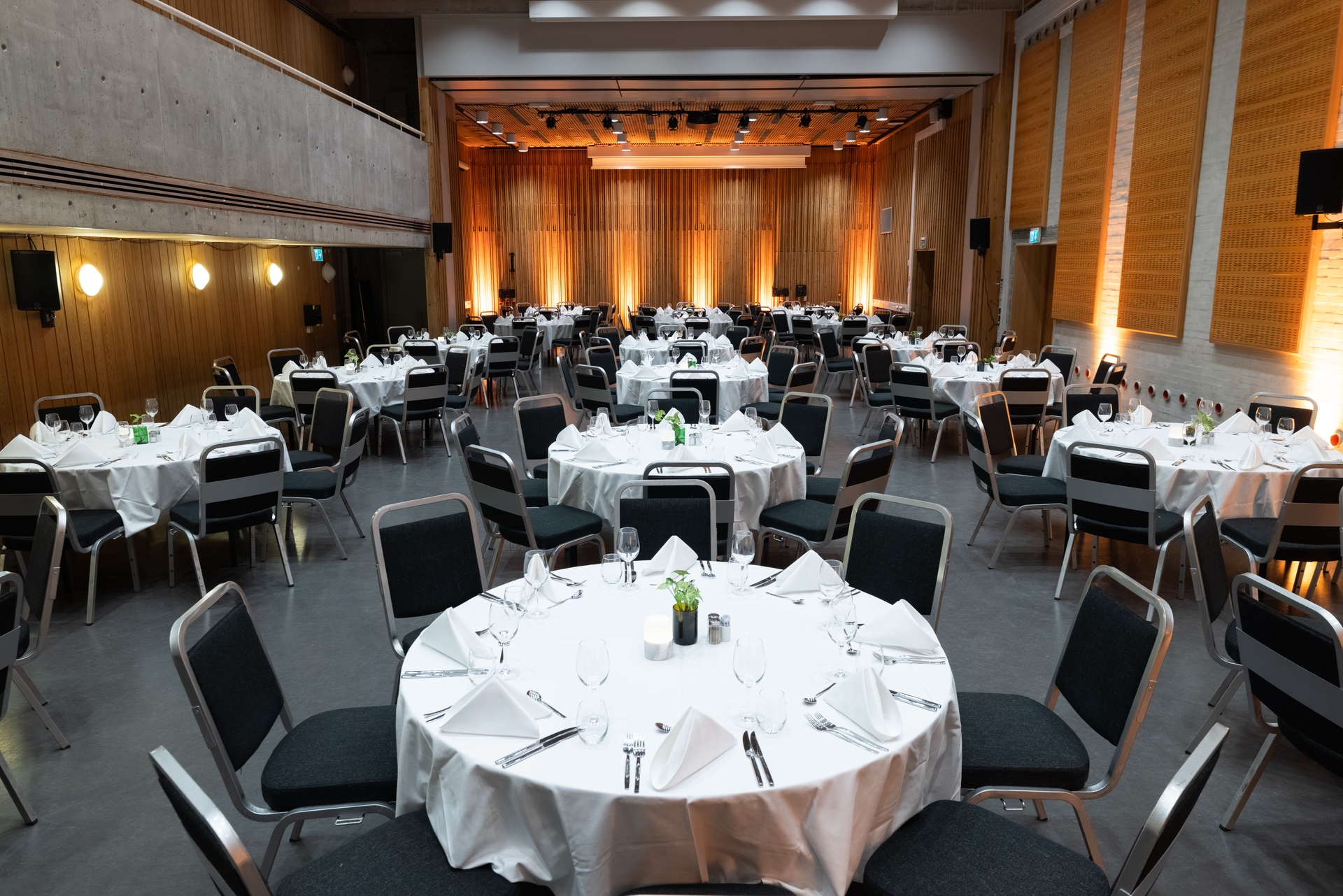 Klokkeklang passer for mellomstore møter og parallelle sesjoner. Kan kombineres med Småtroll og får da en totalkapasitet på 230 i kino oppsett.